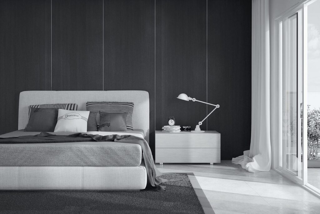 رنگ خاکستری ملایم حس سکون و مدرنیته ایجاد می‌کند و ذهن را برای خواب آماده می‌کند. ترکیب خاکستری با رنگ‌های گرم مانند بژ یا کرم، فضای آرام و دعوت‌کننده‌ای می‌سازد. برای طراحی مینیمالیستی، خاکستری روشن بهترین گزینه است.